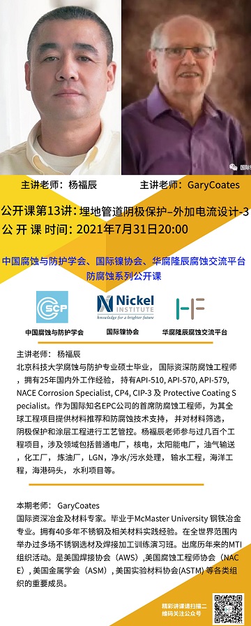 中国腐蚀与防护学会、国际镍协会、华腐隆辰腐蚀交流平台-防腐蚀系列公开课第十三讲