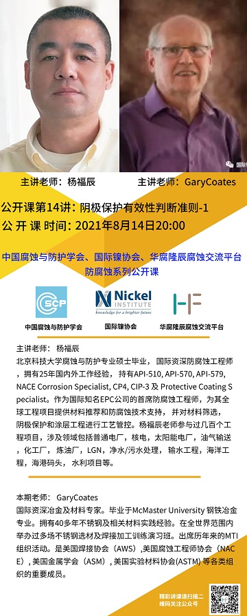 中国腐蚀与防护学会、国际镍协会、华腐隆辰腐蚀交流平台-防腐蚀系列公开课第十四讲